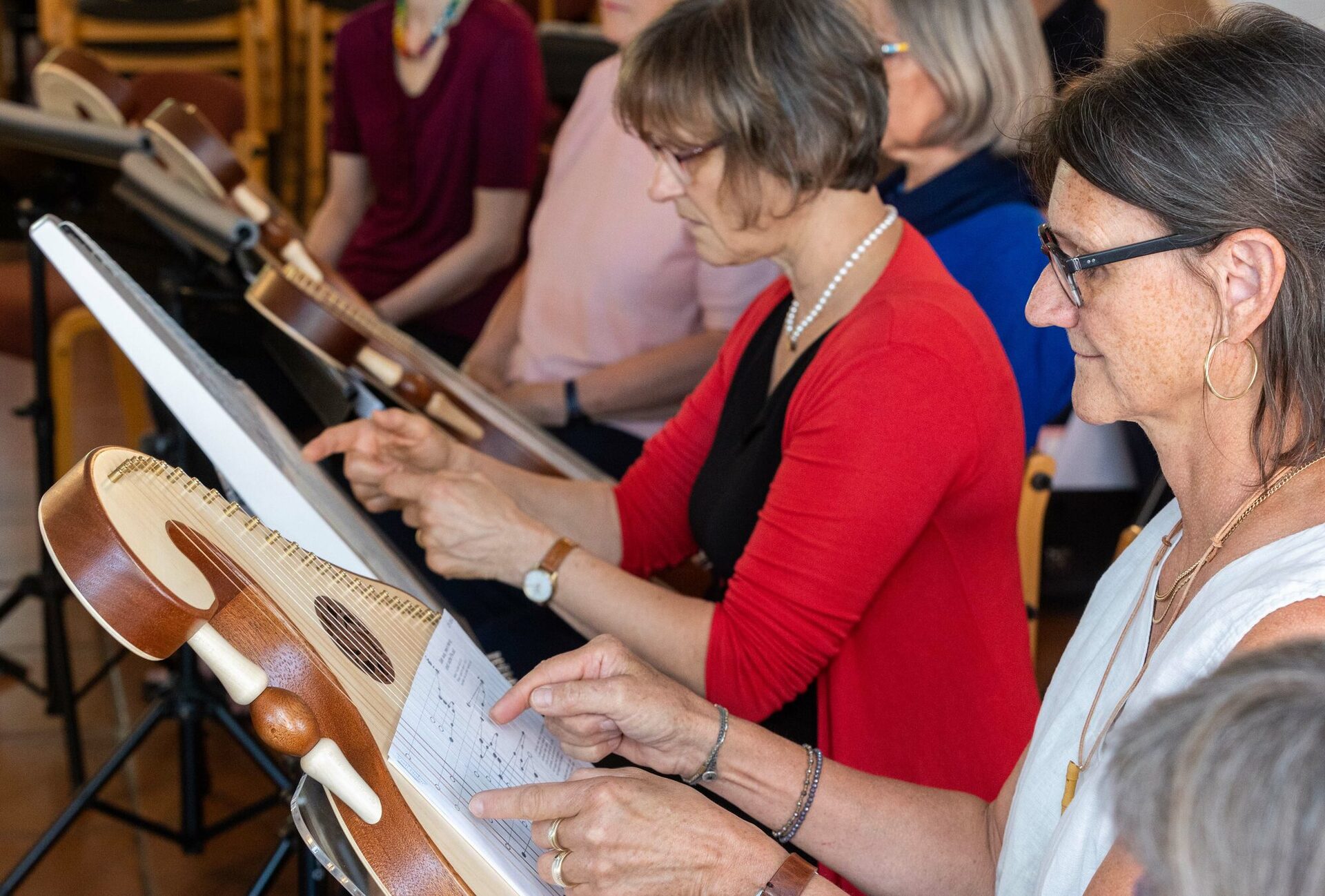 Zum gemeinsamen Musizieren trifft sich regelmäßig donnerstags vormittags das Tischharfenensemble.