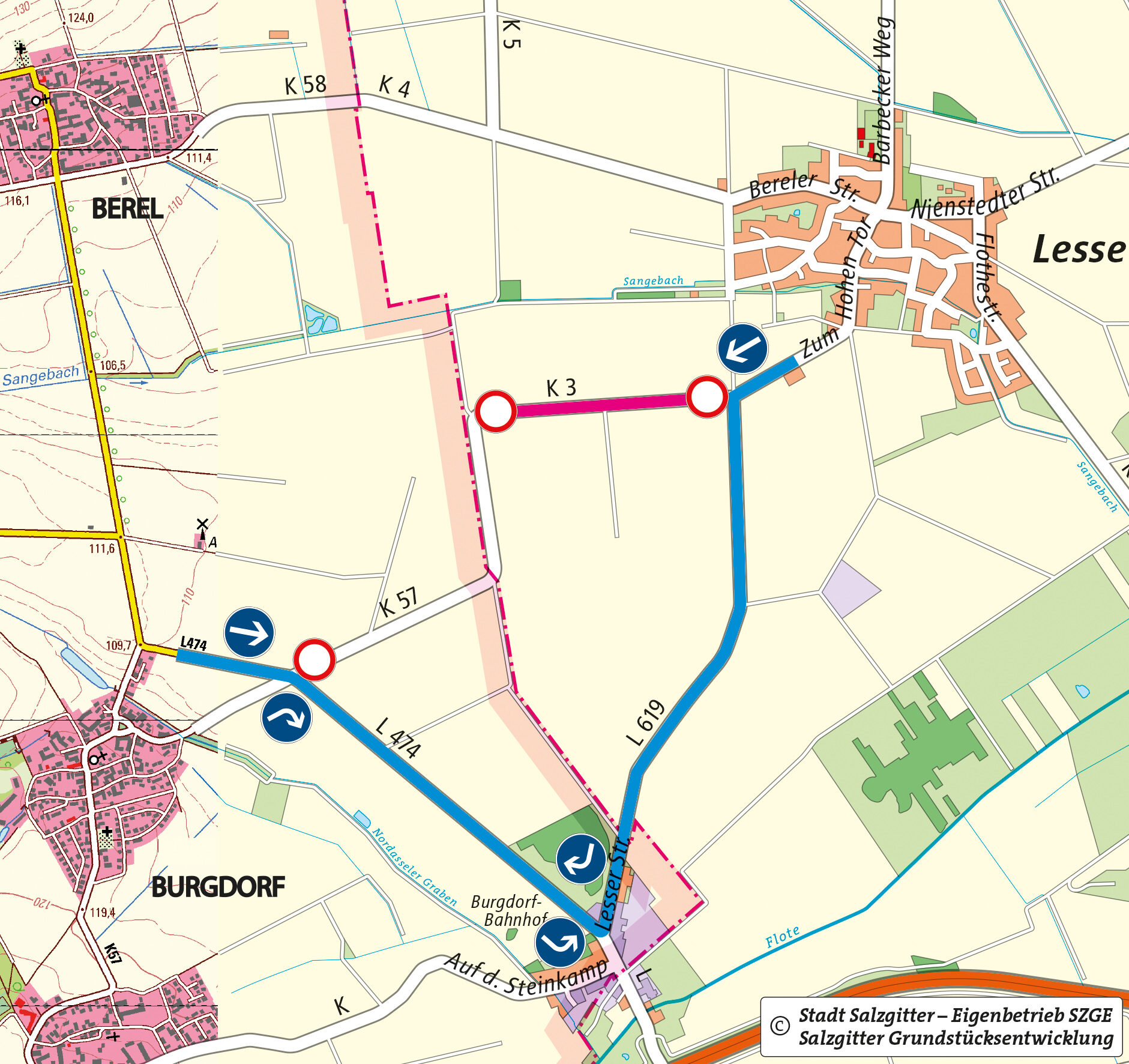 Für den Bau der Energietrasse „380 KV Wahle Mecklar“ durch die Tennet AG im Stadtgebiet Salzgitter ist die Kreisstraße 3 ab Montag, 10. August, zwischen Salzgitter-Lesse und Burgdorf für voraussichtlich sechs Wochen voll gesperrt.