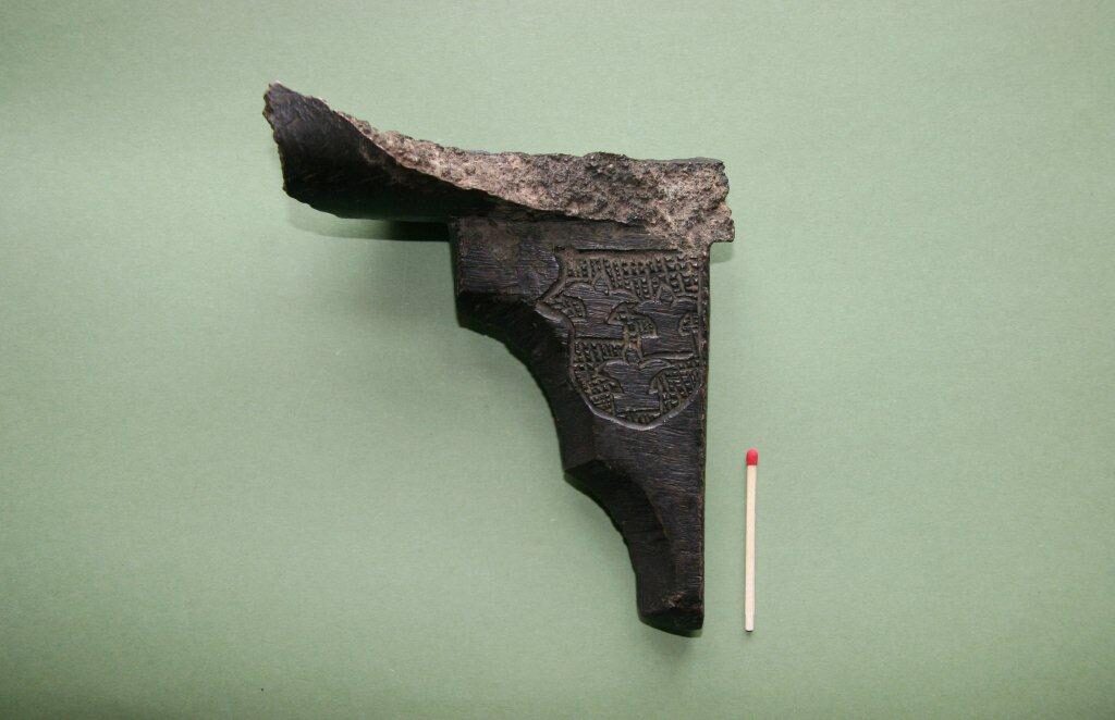 Eine Seite des Hakenbüchsen-Fragments mit dem Wappen der von Cramm