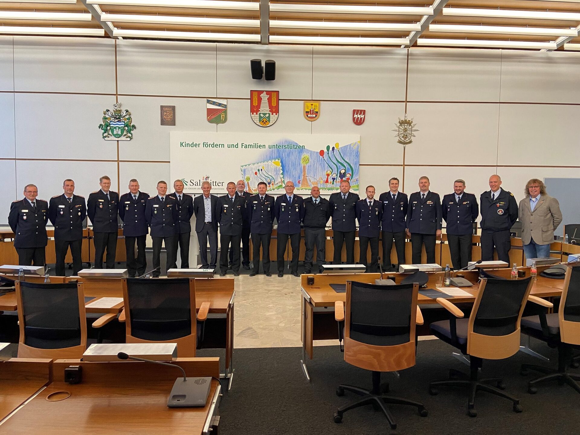 Oberbürgermeister Frank Klingebiel betone bei dieser feierlichen Ernennung: „Der Rat der Stadt Salzgitter, die Mitglieder des Ausschusses für Feuerwehr und öffentliche Ordnung, ich als Oberbürgermeister und die Bürgerschaft sind stolz auf unsere Freiwilligen Feuerwehren. Sie alle gehen, wie die Kolleginnen und Kollegen unserer Berufsfeuerwehr, für Ihre Mitmenschen im wahrsten Sinne durchs Feuer. Sie setzen sich in herausragender Weise für Ihre Ortsgemeinschaft und Ihre Ortswehr ein. Das tun Sie freiwillig und in Ihrer Freizeit; 24 Stunden am Tag und 365 Tage im Jahr sind Sie einsatzbereit! Der ehrenamtliche Dienst als Feuerwehrmann und Feuerwehrfrau ist zum einen gelebte Solidarität, Kameradschaft und Nächstenliebe, aber auch die Wahrnehmung und Sicherstellung der so wichtigen öffentlichen Aufgabe „Brandschutz“! Und Sie tun noch weit mehr. Sie übernehmen in Ihrer Ortswehr die Funktion des Ortsbrandmeisters bzw. stellvertretenden Ortsbrandmeisters und stehen mit Ihrer Ernennung für die nächsten 6 Jahre in einem Ehrenbeamtenverhältnis, einem freiwilligen Dienst- und Treueverhältnis, zur Stadt Salzgitter. Damit übernehmen Sie eine besondere Verantwortung für Ihre Feuerwehrkameradinnen und Feuerwehrkameraden in Ihrer Ortswehr, für die Menschen in Ihrem Ortsteil und in ganz Salzgitter. Dieses Ehrenamt ist nicht nur sehr fordernd, sondern als Führungsamt auch besonders wichtig. Sie leiten Ihre Ortswehr und sind erster Ansprechpartner für die Feuerwehrkameradinnen und Feuerwehrkameraden vor Ort, haben vielfältigste organisatorische Aufgaben und repräsentieren Ihre Ortswehr in der Öffentlichkeit. Ich bedanke mich bei Ihnen allen, die dieses wichtige Ehrenamt neu übernehmen oder schon seit vielen Jahren ausüben. Sie können zu Recht stolz auf Ihre Ernennung sein, denn zum einen sind Sie von den Feuerwehrkameraden und Feuerwehrkameradinnen Ihrer Ortswehr in dieses Ehrenamt gewählt und zum anderen einstimmig vom Rat der Stadt Salzgitter bestätigt worden. Herzlichen Dank für Ihr herausragendes ehrenamtliches Engagement.“
