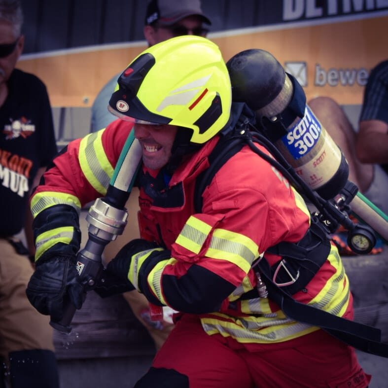 Bei der Challenge gilt es in voller Schutzausrüstung ein 20 kg schweres Schlauchpaket 3 Etagen nach oben zu bringen. Dort angekommen muss ein weiteres 20 kg Schlauchpaket an einem Seil die 3 Etagen nach oben gezogen werden. Im Anschluss geht es die 3 Etagen schnellstmöglich wieder herunter. Unten angekommen muss mit einem Hammer ein ca. 75 kg schweres Gewicht auf einer Schlagmaschine einen Meter nach hinten geschlagen werden. Danach geht es in einen Slalomparcours an dessen Ende ein gefüllter Schlauch aufgenommen werden muss. Dieser wird über eine Strecke von 25m gezogen und am Ende ein Ziel abgespritzt. Die letzte Disziplin ist das Ziehen einer 80 kg Puppe über eine Distanz von 30m. Der gesamte Parcours muss so schnell wie möglich durchlaufen werden und kann von einem Starter allein (Einzel), zu zweit (Tandem) oder im Team von 3 bis 5 Leuten (Staffel) absolviert werden.