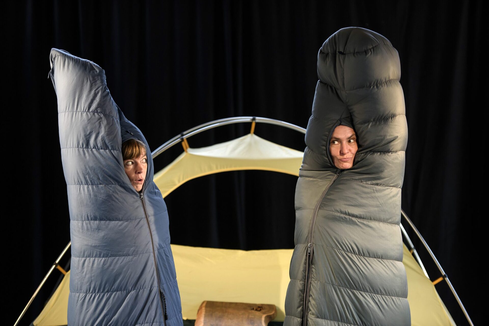 Die Spielerinnen schlagen ihr Zelt auf und nehmen das Publikum mit auf die Reise ins malerische Glimmerdal. Einfach und improvisiert, wie es beim Camping zugeht, entsteht alles aus dem, was da ist. Schlafsäcke verwandeln sich in Berge, ein Brett wird zu Gunnvalds Hof und ein paar Tassen helfen, die verkorkste Familiensituation aufzustellen.