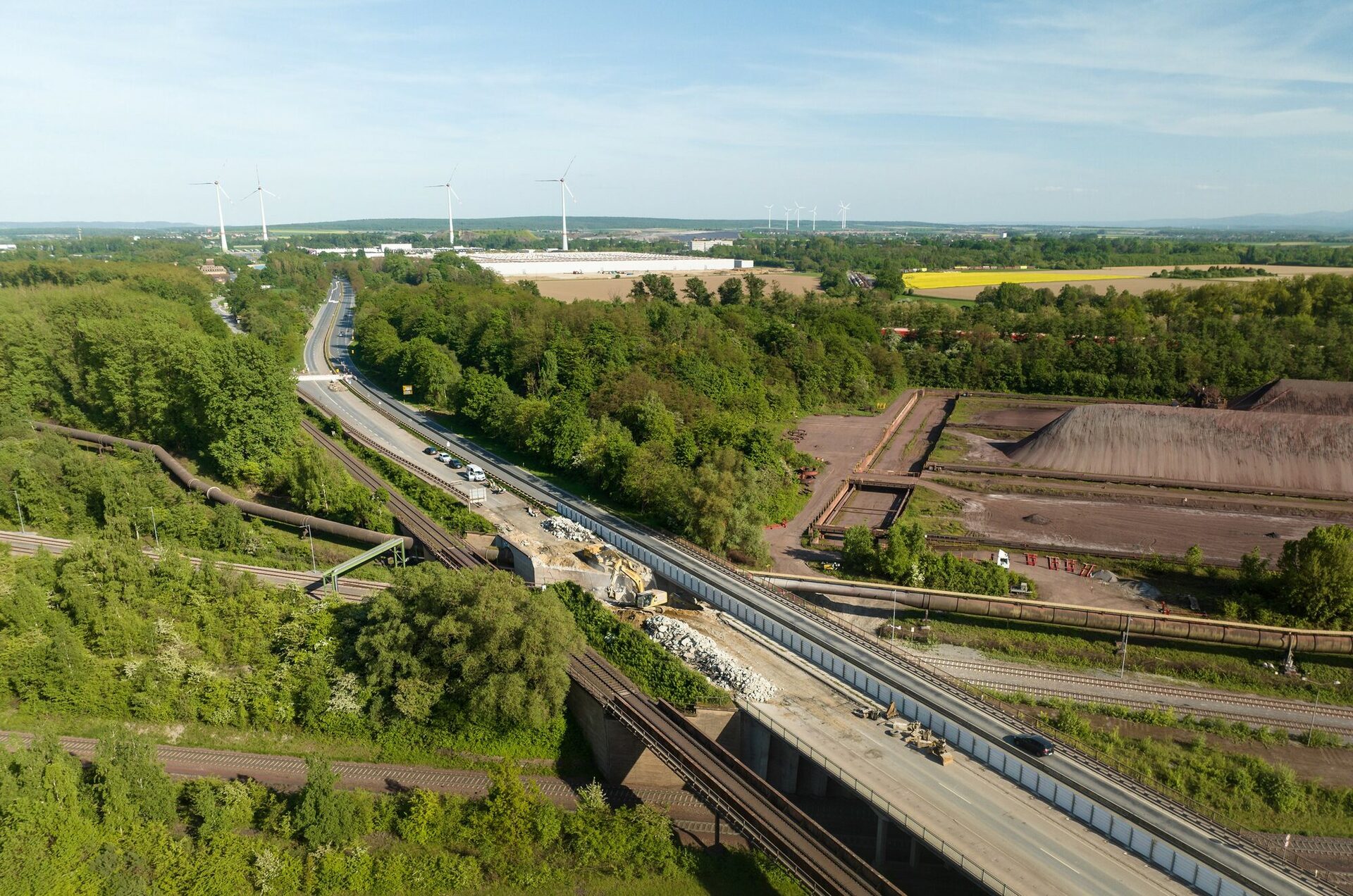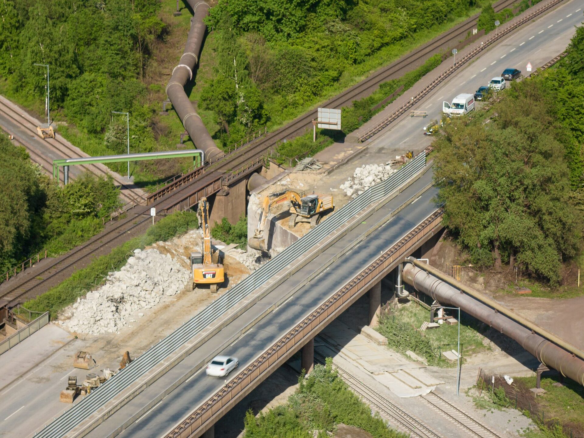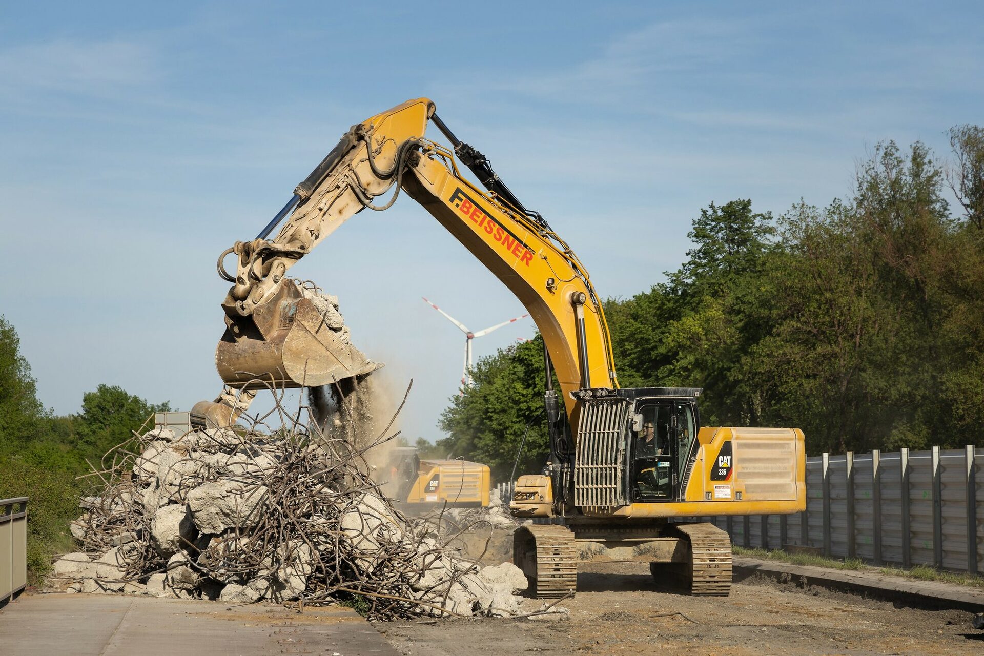 Am frühen Mittwochmorgen, 1. Mai, hat der Abbruch der ersten Brücke auf der Nordseite der Industriestraße Mitte begonnen und konnte am heutigen Tag erfolgreich abgeschlossen werden.