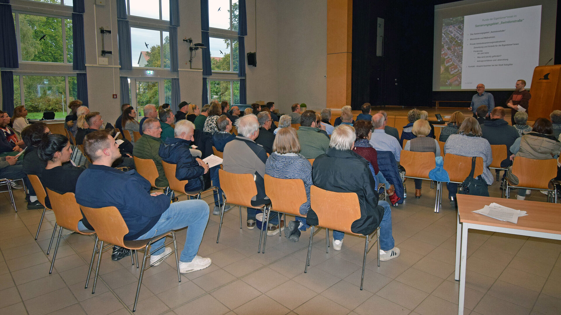 Darüber informierte Stadtbaurat Michael Tacke und sein Team vom Referat Stadtumbau und Soziale Stadt die rund 100 Eigentümerinnen und Eigentümer während einer Informationsveranstaltung in der Aula des Kranich-Gymnasiums, die großes Interesse und viele Fragen hatten.
