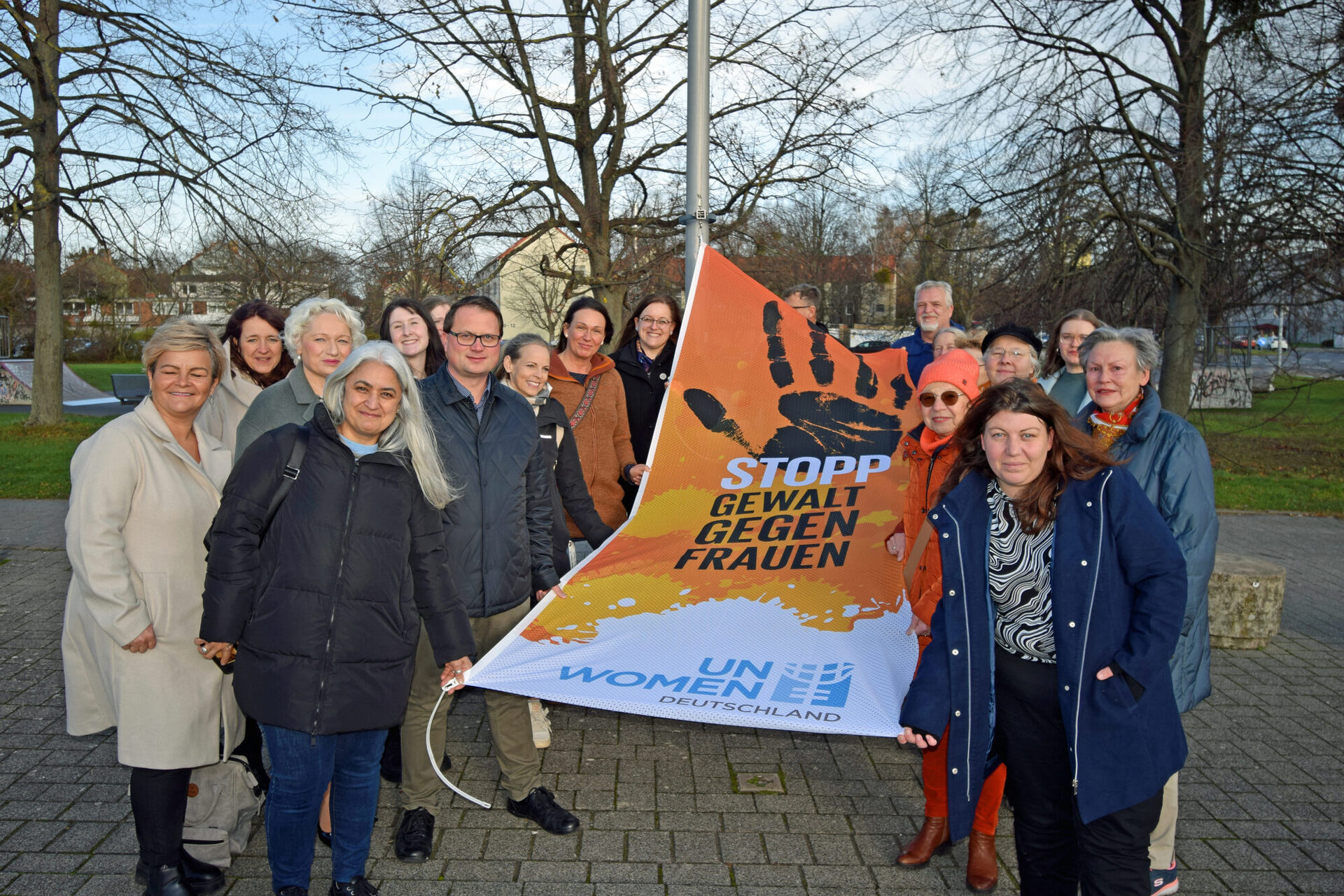 Hier zeigt das Netzwerk gegen Häusliche Gewalt in Salzgitter Flagge. „Salzgitter ist gottseidank in manchen Punkten weiter als viele Kommunen in Deutschland: Wir haben überhaupt ein Frauenhaus und auch die Beratungsstellen werden aus städtischen Mitteln mit unterstützt", fasst Semmler die Situation zusammen. Mit diesem Netzwerk wurde am 25.11.2024 vor dem Rathaus Salzgitter-Lebenstedt im wahrsten Sinne des Wortes „Flagge gezeigt“. Ebenso wird an einigen Schulen und anderen Institutionen die Flagge der UN gegen Gewalt an Frauen zu sehen sein.