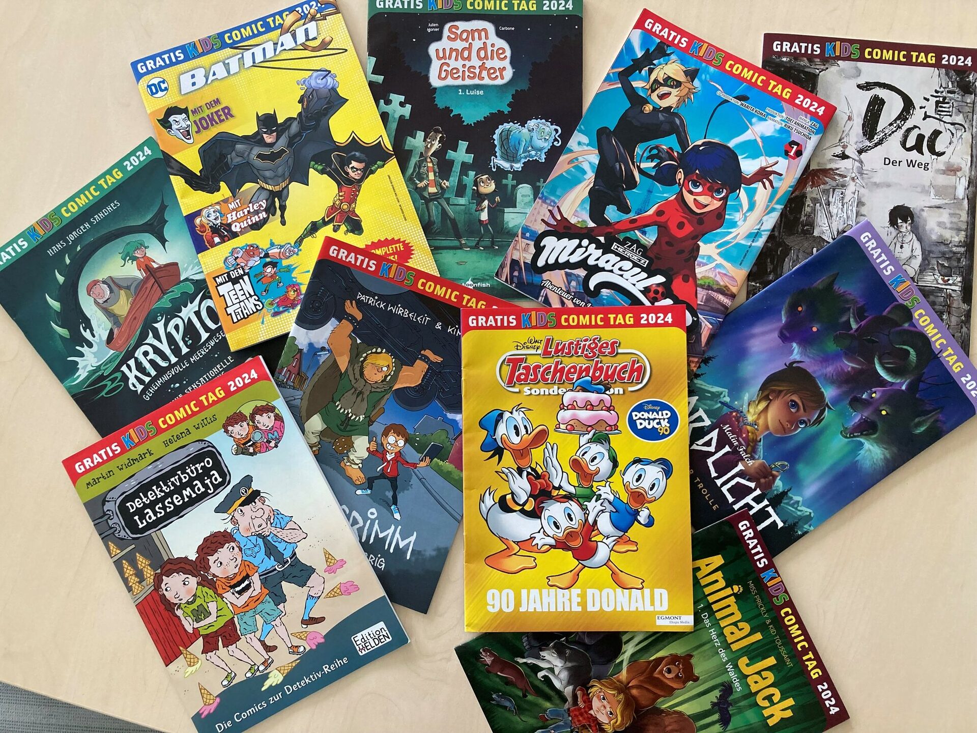 Die übrigbleibenden Comic-Hefte bleiben nach diesem Comic-Tag in den Stadtbibliotheken zum Mitnehmen und sind dann ebenfalls in der Zweigstelle Fredenberg erhältlich (zu den jeweiligen Öffnungszeiten).