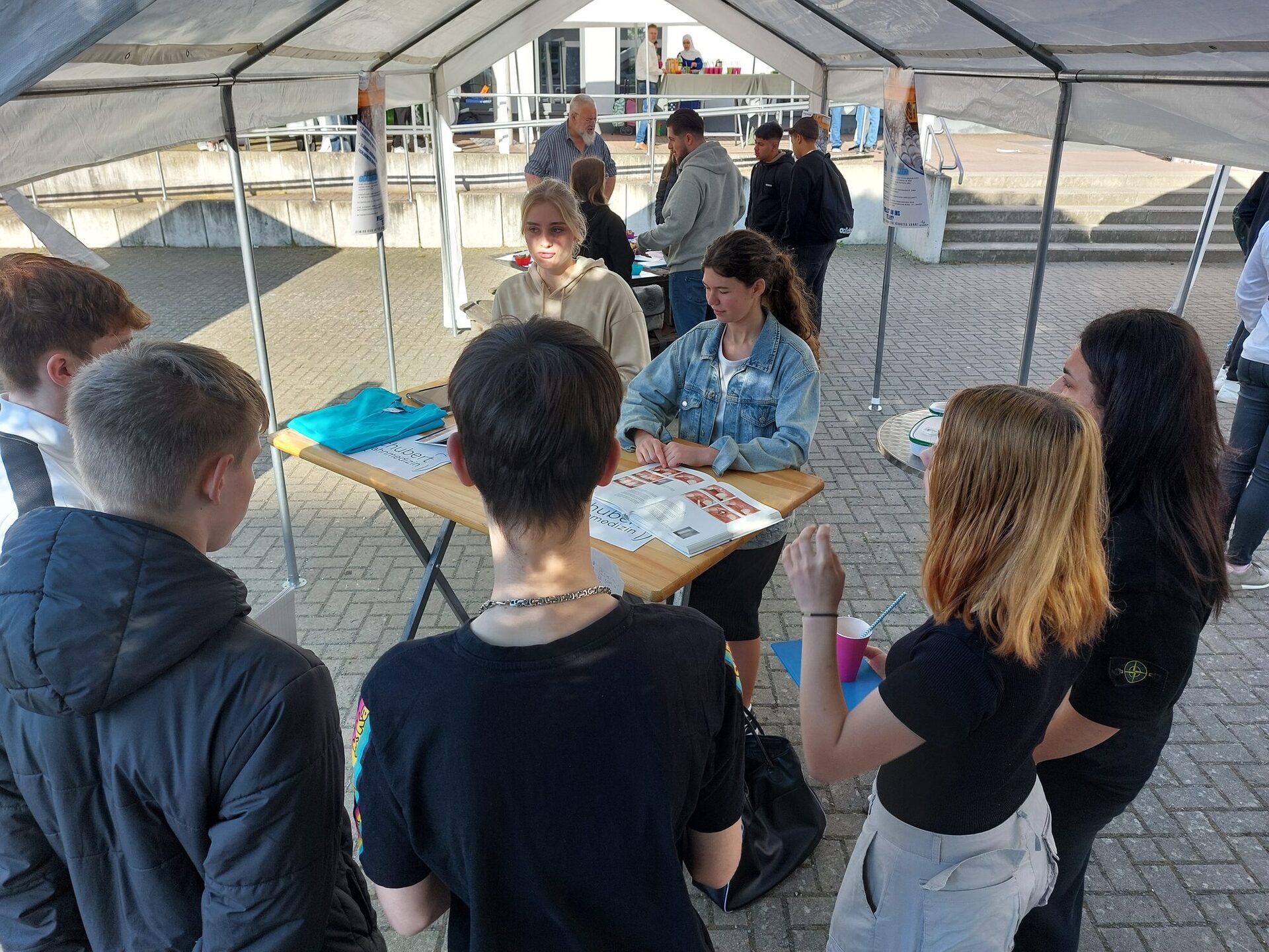 Neben den Unternehmen war auch die BBS Fredenberg als berufsbildende Schule vertreten. Hier konnten sich die Schülerinnen und Schüler über die bestehenden und neuen Bildungsgänge in der Pflege und über das noch junge Angebot einer einjährigen Berufsfachschule Gastronomie bei einem frischen Fruchtcocktail informieren.