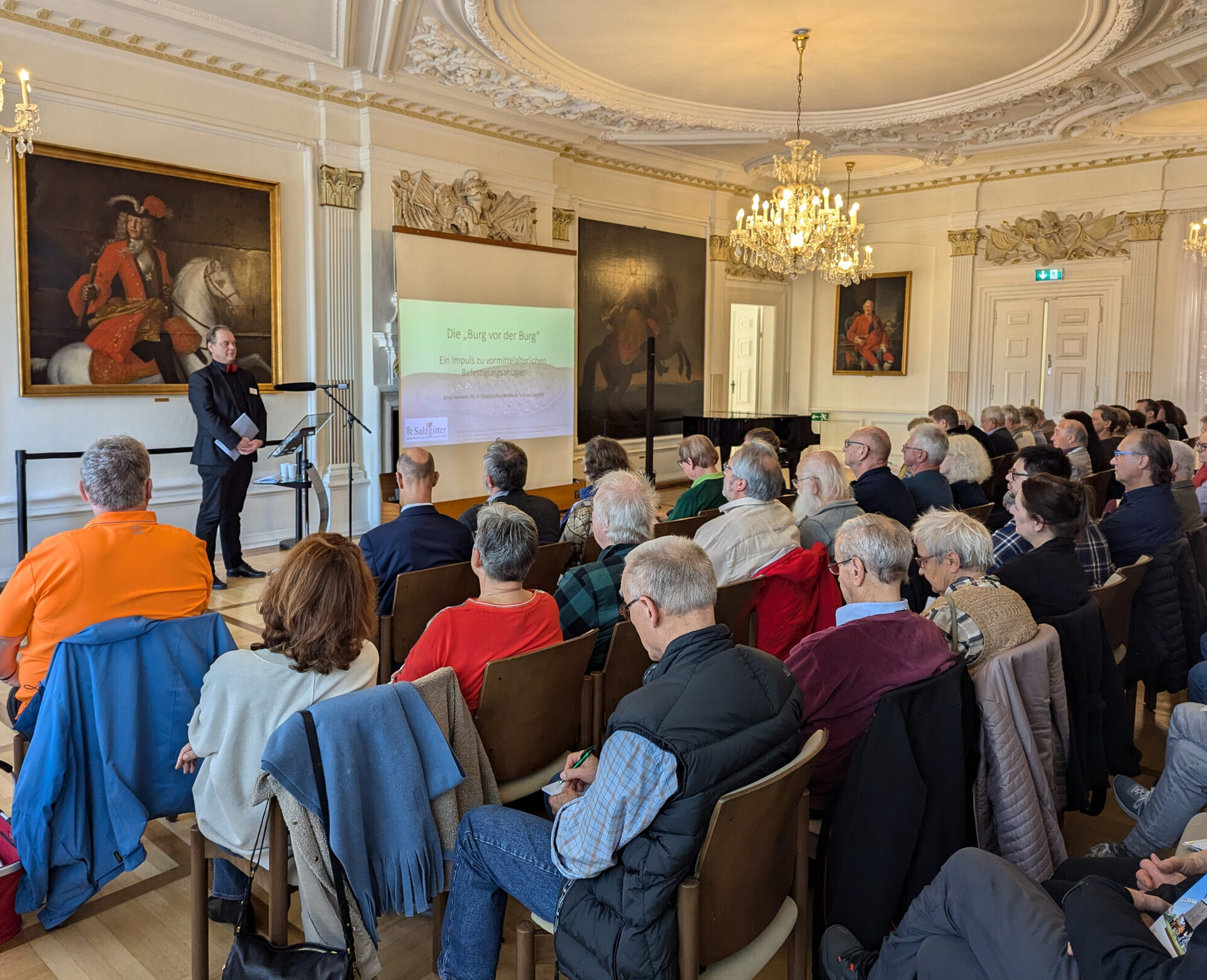Sie hörten interessante Vorträge zum Thema „Burgen–Schlösser–Herrenhäuser: Wo in Salzgitter der Adel saß“. Der bis auf den letzten Stuhl besetzte Fürstensaal des historischen Gebäudes bot dafür die perfekte Kulisse.