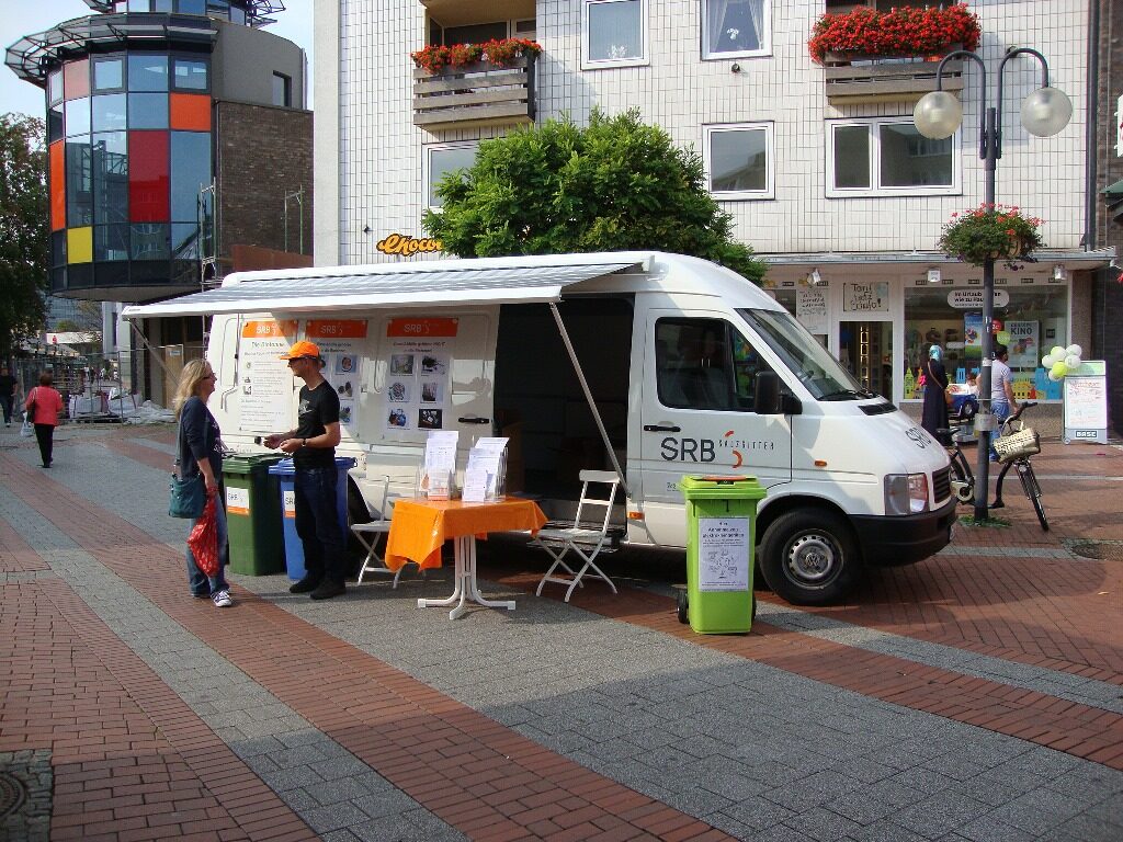 Am Informationsstand am Bus der Abfallberatung sind Anträge für Behälteraufstellungen und –änderungen, Sperrmüllkarten, diverse Informationsblätter zu Abfallentsorgungsgebühren und zur Abfallentsorgung erhältlich.