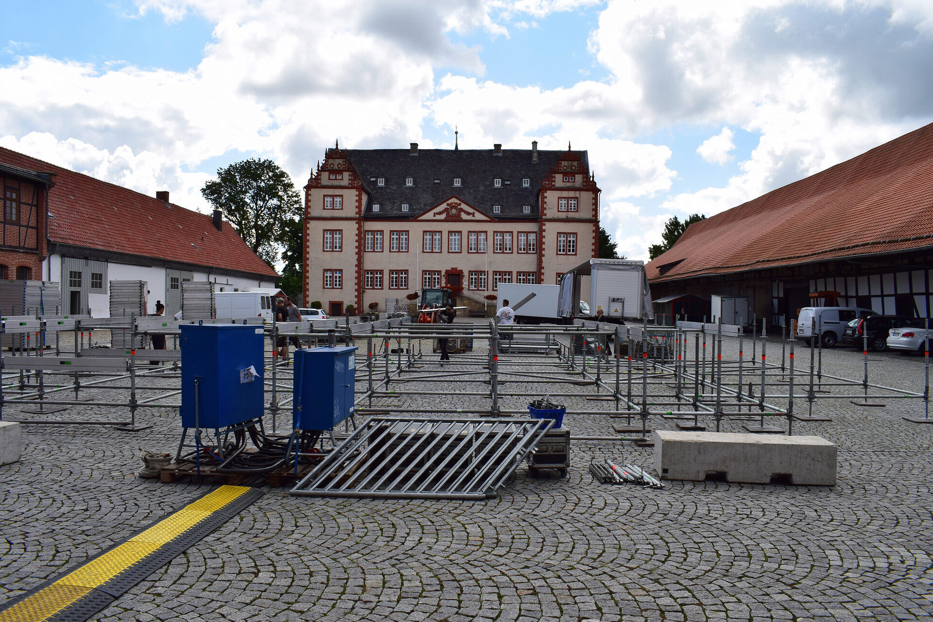 Noch wird an der Bühne gebaut und von ihrer letztendlichen Größe ist nicht viel zu sehen. Doch schon am Freitag, 1. August wird „Versengold“ um 20 Uhr die Bühne rocken. Die sechs Folkrocker sind eine feste Größe in der deutschsprachigen Musik. In Salzgitter machen sie auf ihrer Tour "Live" 2025 Halt. Bis dahin muss die Bühne und die Technik stehen. Kein Problem für Annika Gudat-Hedel, die als eine der wenigen Chefinnen in diesem Bereich, den Bühnenaufbau leitet. Gemeinsam mit ihrem Team sorgt sie dafür, dass die Zuschauerinnen und Zuschauer, wenn sie bei den Kultursommer-Konzerten die Musik auf dem Schlosshof genießen, nichts davon mitbekommen, wie aufwendig die Planung und Aufstellung einer Bühne ist.