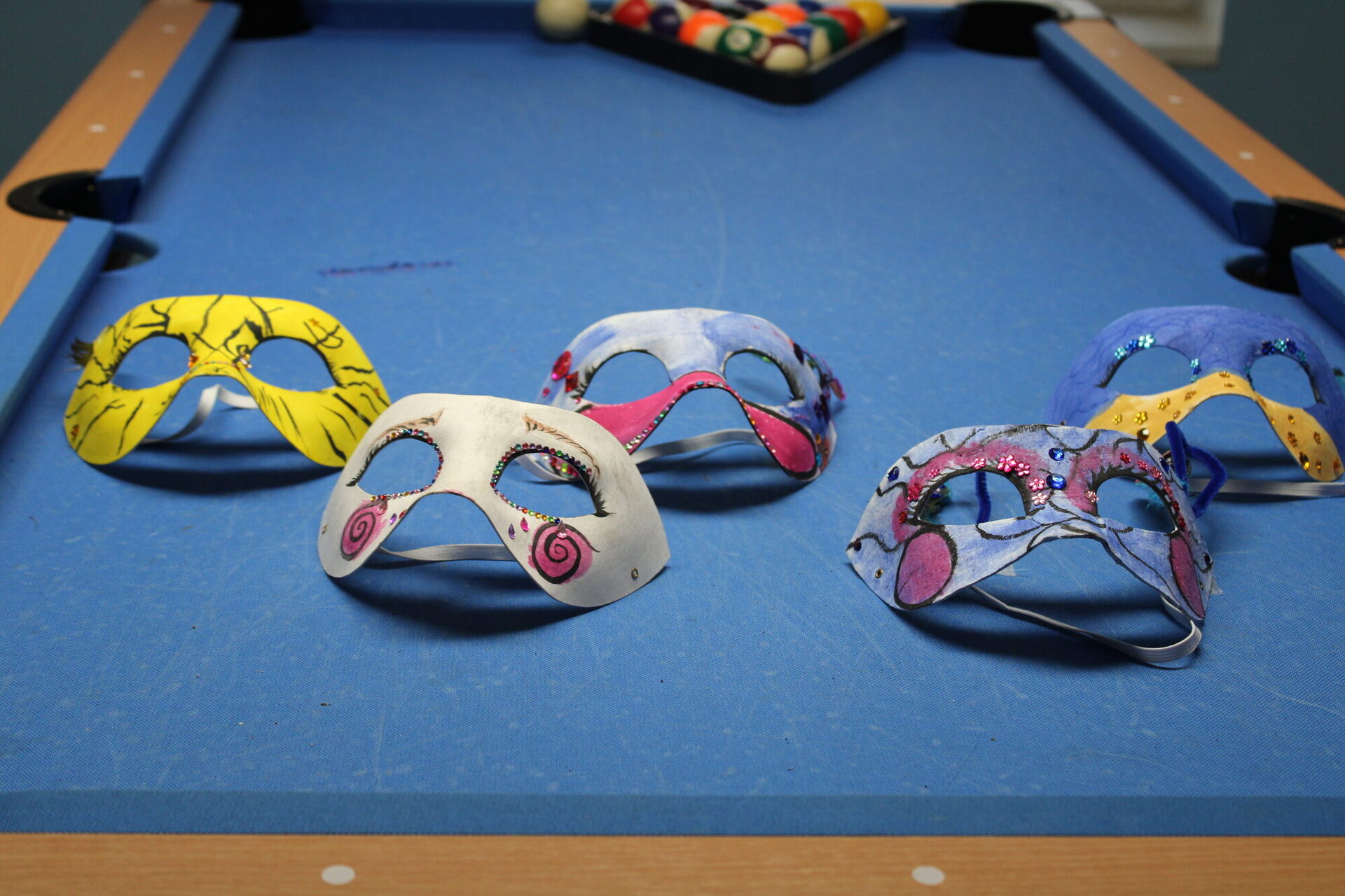 Nach dem spielerischen Kennenlernen, konnten die Kinder- und Jugendlichen in den Kinder- und Jugendtreffs Hallendorf, Thiede und Lebenstedt (KJT Graffiti) ihre eigenen Masken gestalten. Fachliche Unterstützung gab es von Theaterpädagogin Charlotte Werner. Die Kinder und Jugendlichen waren kreativ, auch wenn die Entscheidung nicht leicht viel. Welche Farbe nehme ich, welche Form soll die Maske haben, welche Rolle möchte ich spielen: Die Kinder probierten aus, tauschten sich aus und mussten erfahren, dass Farben auch trocknen müssen…