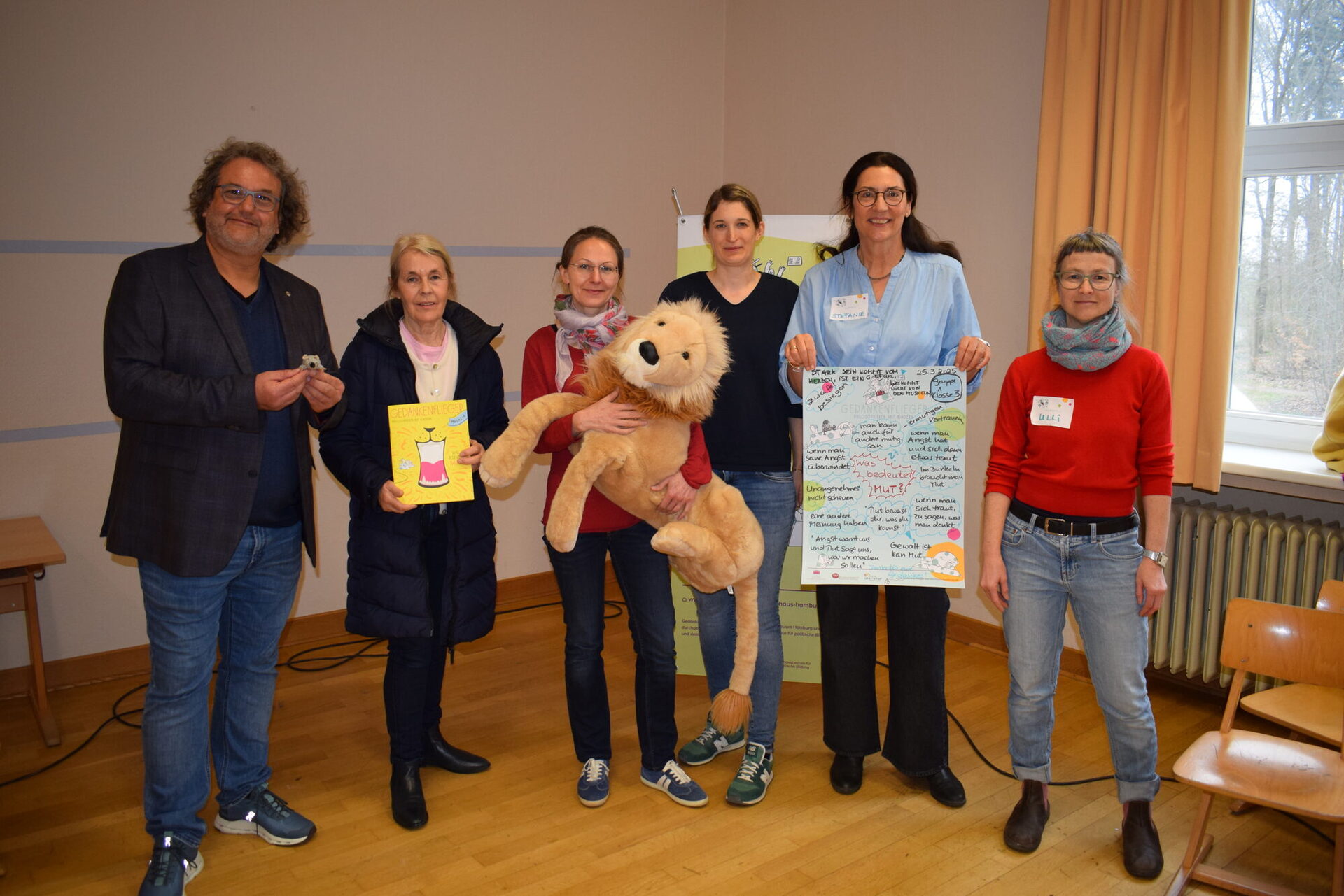 Nach dem Gedankenaustausch wurde sich mit den von den Referentinnen mitgebrachten Bilderbüchern beschäftigt. Doch zuvor wurden die Kinder gefragt, wer nach ihrer Ansicht am mutigsten sei, ein Löwe oder eine Maus. Anders als auch von Stefanie Segatz und Ulrike Jänichen erwartet, bildeten sich in der Klasse zwei fast gleich große Parteien. Die eine meinte, die Maus sei mutiger als der Löwe, und die andere hielt die Raubkatze für die Mutigere. Nach der Beschäftigung mit den Bilderbüchern ergab sich ein ganz anderes Bild. Jetzt waren die meisten der Schülerinnen und Schüler sicher: "Die Maus ist die Mutigere".