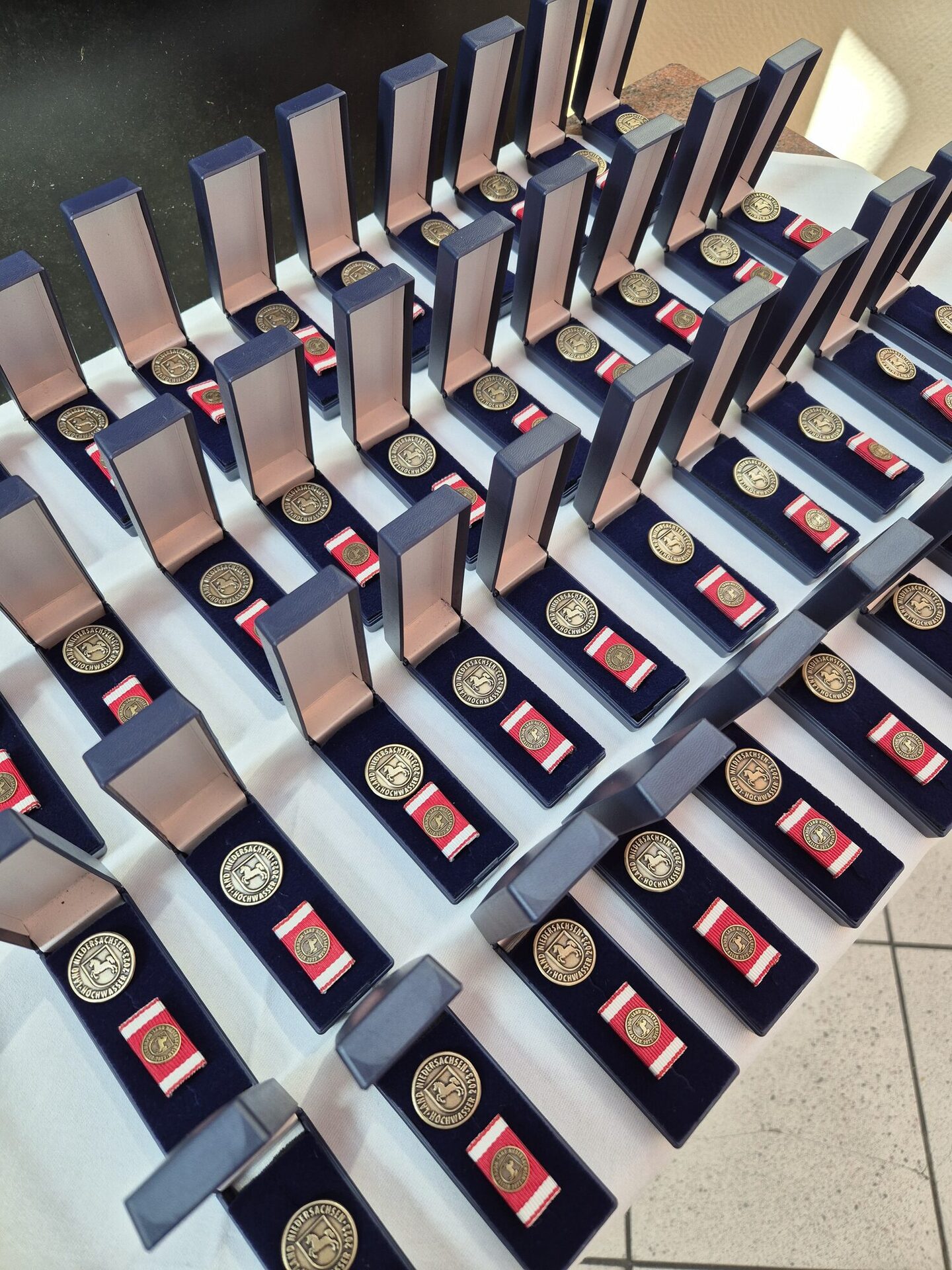 Im Auftrag des ehemaligen Niedersächsischen Ministerpräsidenten Stephan Weil überreichte Oberbürgermeister Frank Klingebiel am Donnerstag, 12. Juni, diese herausgehobenen Auszeichnungen stellvertretend an die Führungskräfte der Freiwilligen Feuerwehren, der Berufsfeuerwehr sowie der Hilfsorganisationen in Salzgitter für ihren großartigen Einsatz anlässlich der Hochwasserbekämpfung im Dezember 2023/Januar 2024.