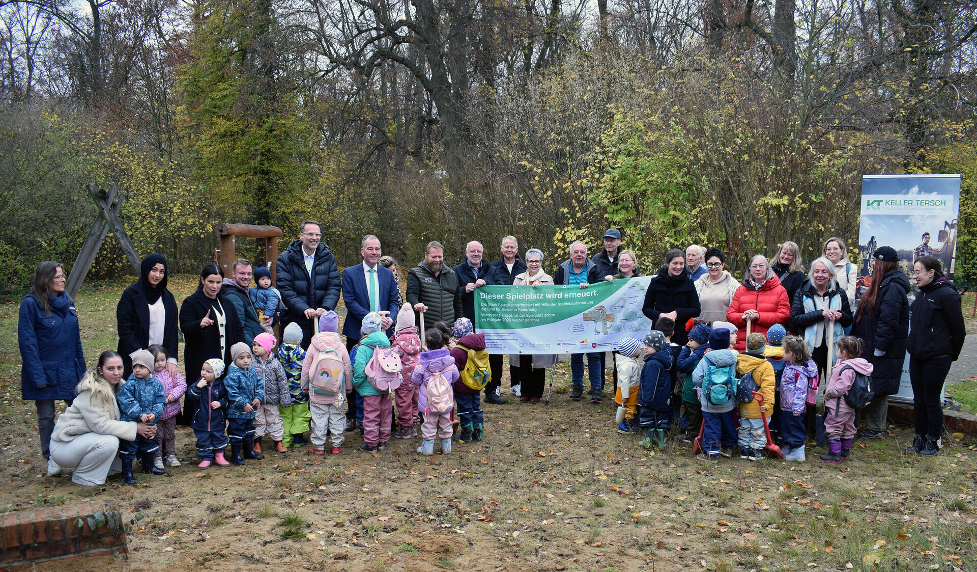 - Der „Spielplatz Unter den Eichen“ wird ein schöner neuer Ort für alle Generationen mit einem vielfältigen Spiel-, Sport- und Aufenthaltsbereich:
