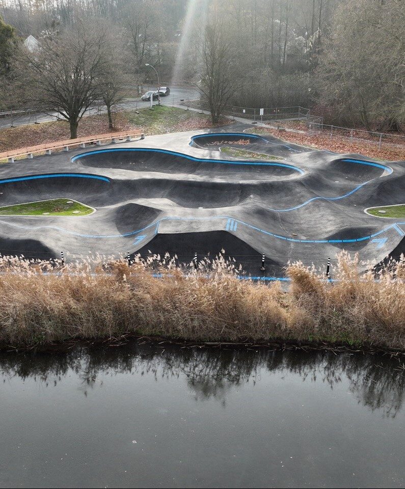 Im Sommer wurde der Wettbewerbsentwurf direkt vor Ort mit Vertretern des Jugendparlaments, des Beirats für Menschen mit Behinderung sowie ortsansässigen Kindern und Jugendlichen im Juli 2025 erörtert. Vertret- und realisierbare Anpassungen wurden daraufhin vorgenommen und im September 2025 erfolgte der erste Spatenstich. Nach gut drei Monaten Bauzeit ist die Pumptrackanlage nun fertiggestellt. Toll ist, dass Jugendliche aus Salzgitter den Bau durch ihre Mithilfe bei den Markierungsarbeiten unterstützt haben.