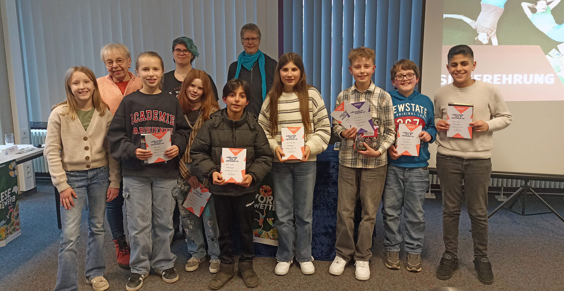 Wettbewerbsteilnehmende waren Hanif Hammi vom Kranich-Gymnasium, Sofie Moews von der IGS Salzgitter, Amar Demir vom Gymnasium am Fredenberg, Riley Boever von der Realschule Gebhardshagen, Luisa Chiara Garn von der Realschule Salzgitter Thiede, Jenke Niehus vom Gymnasium Salzgitter-Bad und Stella Konter von der Realschule Salzgitter Bad. Mit Textpassagen aus selbstgewählten Kinder- und Jugendbüchern ging es dabei in die erste Runde. Ein frecher Spatz, das unerschrockene Ermittlerteam der drei ??? und eine abgefahrene Familie mit einem rebellischen Opa waren unter anderem die Hauptfiguren.
