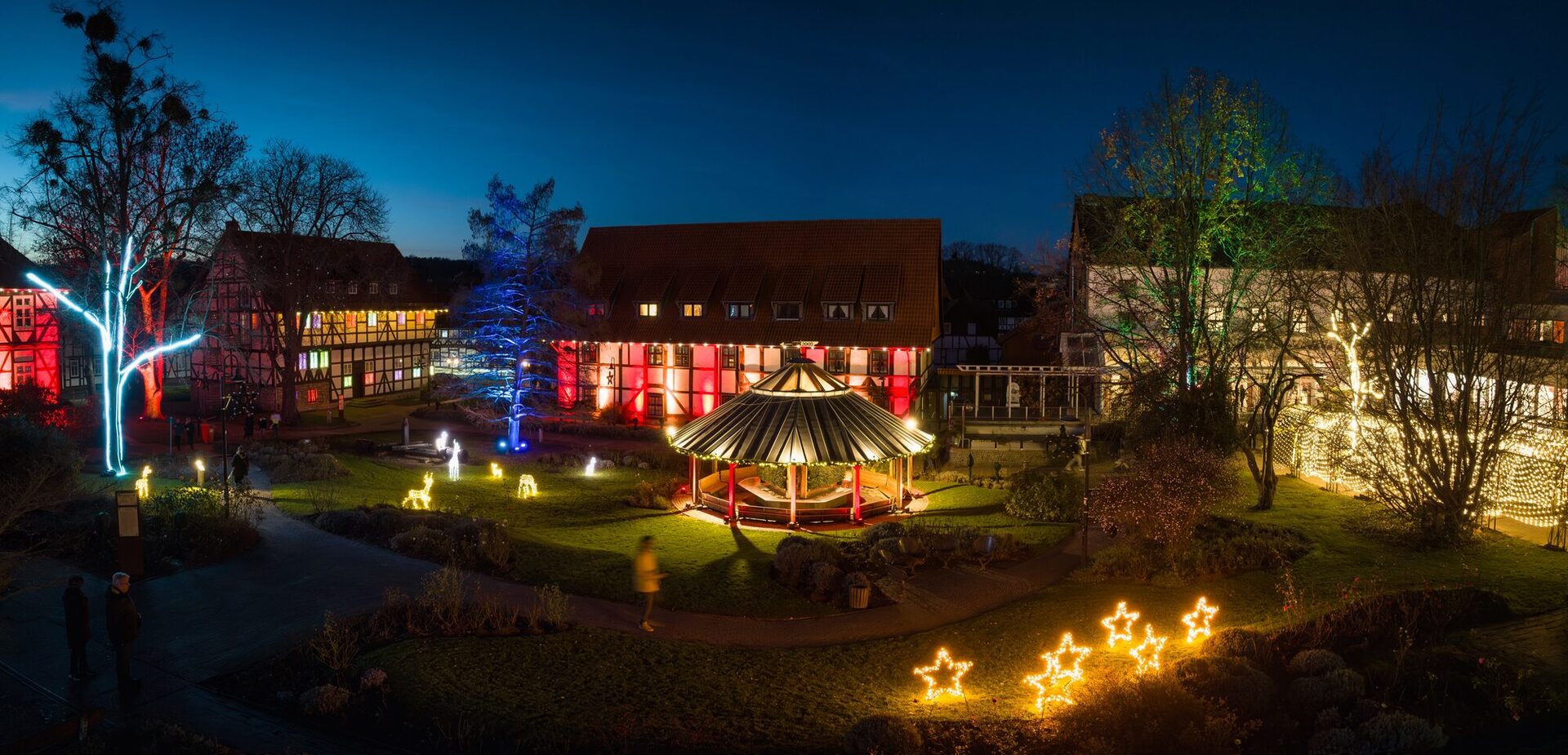 Ergänzend zum Weihnachtstreff verwandelt sich der Rosengarten in Salzgitter-Bad bereits zum dritten Mal in eine faszinierende Lichterwelt. In diesem Jahr erwartet die Besucherinnen und Besucher jedoch ein ganz neuer Anblick: Während der Rosengarten in den letzten Jahren in ein warm-weihnachtliches Licht getaucht wurde, wird der Kurpark in diesem Jahr eine frostig-winterliche Magie versprühen. Es entsteht ein Eisgarten, in dem kühle Blau- und Weißtöne sowie schimmernde Farben der Polarlichter eine winterliche Atmosphäre schaffen. Zwischen beleuchteten Eisschollen wirkt der Gradierpavillon, als sei er in eine Eishöhle verwandelt worden. Auch das Kniestedter Gutshaus wird in diesem Jahr wieder durch verschiedene Projektionen in Szene gesetzt.