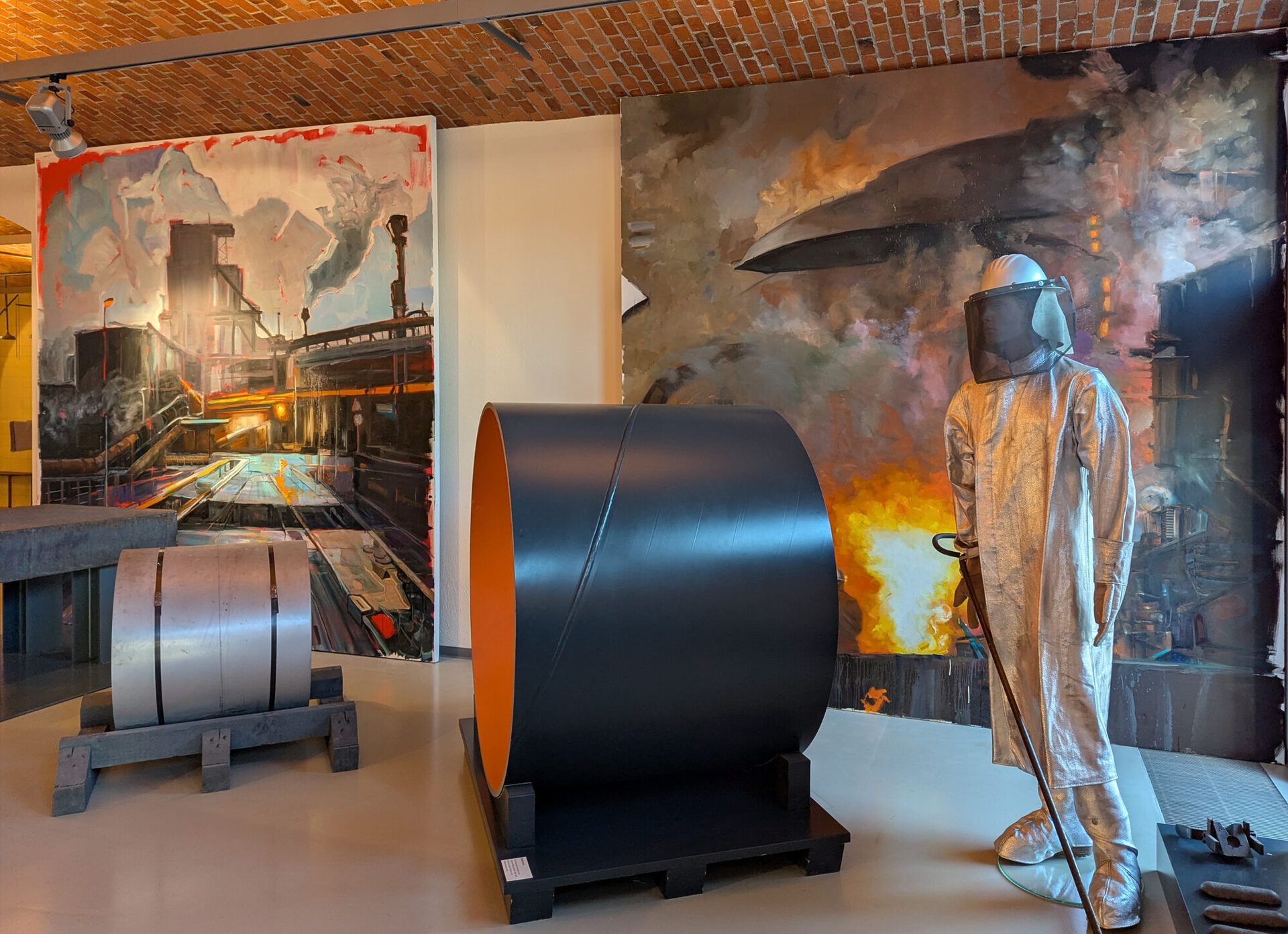 Im Ausstellungsgebäude „Pferdestall“ ergänzen sie auf atmosphärische Weise die bisherige Präsentation von Gegenständen aus der Arbeitsgeschichte der Stahlstadt Salzgitter im Erdgeschoss.