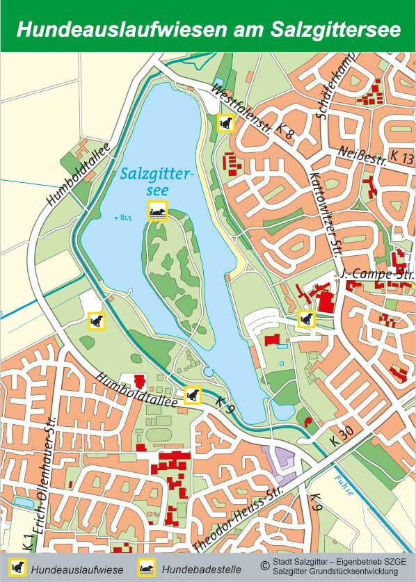 | Salzgittersee | Hunde müssen am Salzgittersee mit Ausnahme der vier Hundeauslaufwiesen und des Hundebadestrandes an der Leine geführt werden. (§ 5 Abs. 2 Salzgittersee-VOPDF-Datei146,86 kB) |