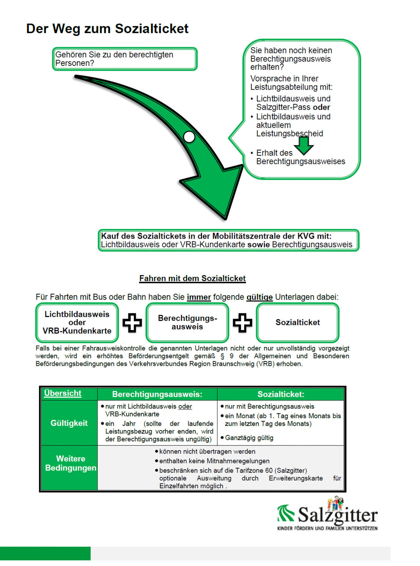 Der Erwerb ist mit Vorlage eines Lichtbildausweises oder der VRB-Kundenkarte sowie des Berechtigungsausweises ausschließlich in der KVG-Mobilitätszentrale am Bahnhof, (Konrad-Adenauer-Straße 8, 38226 Salzgitter-Lebenstedt) möglich.