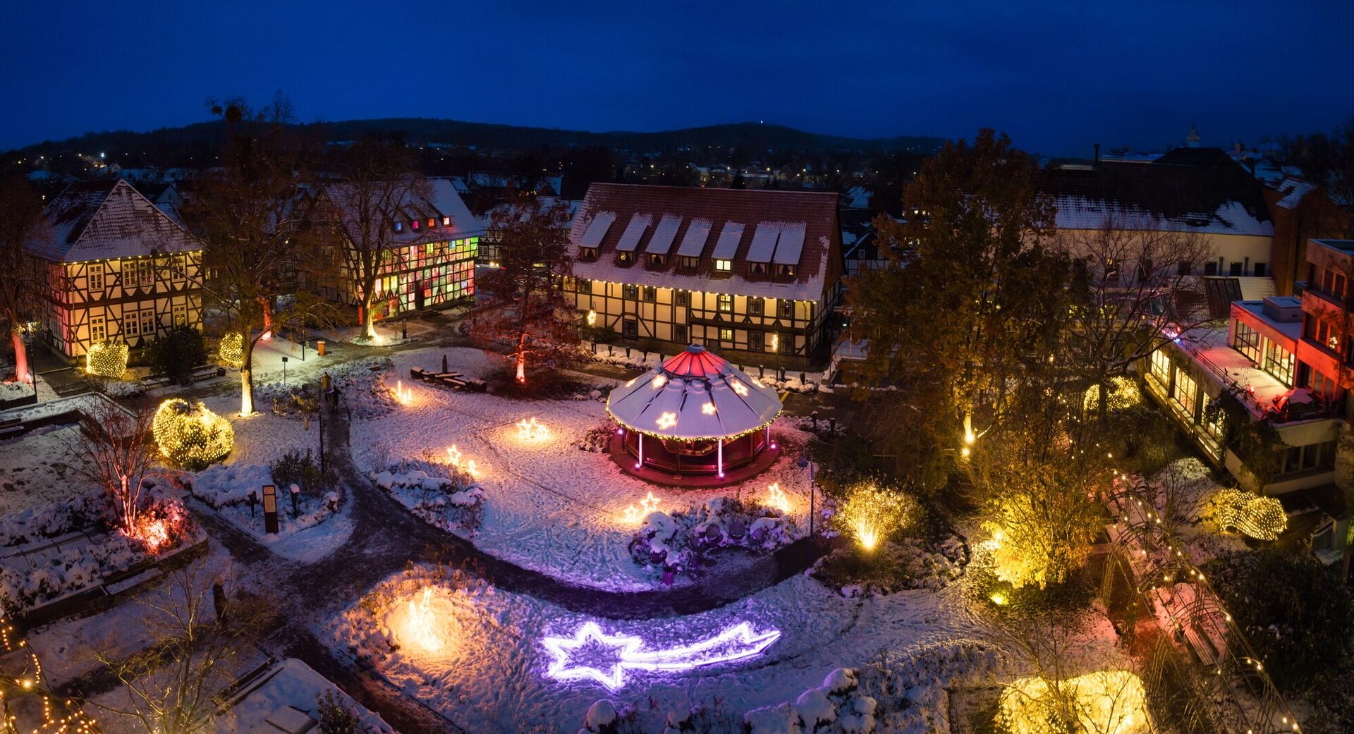 Ergänzend zum Weihnachtstreff verwandelt sich der Rosengarten in Salzgitter-Bad bereits zum dritten Mal in eine faszinierende Lichterwelt. In diesem Jahr erwartet die Besucherinnen und Besucher jedoch ein ganz neuer Anblick: Während der Rosengarten in den vergangenen Jahren in ein warm-weihnachtliches Licht getaucht wurde, wird der Kurpark in diesem Jahr eine frostig-winterliche Magie versprühen. Es entsteht ein Eisgarten, in dem kühle Blau- und Weißtöne sowie schimmernde Farben der Polarlichter eine winterliche Atmosphäre schaffen. Zwischen beleuchteten Eisschollen wirkt der Gradierpavillon, als sei er in eine Eishöhle verwandelt worden. Auch das Kniestedter Gutshaus wird in diesem Jahr wieder durch verschiedene Projektionen in Szene gesetzt.